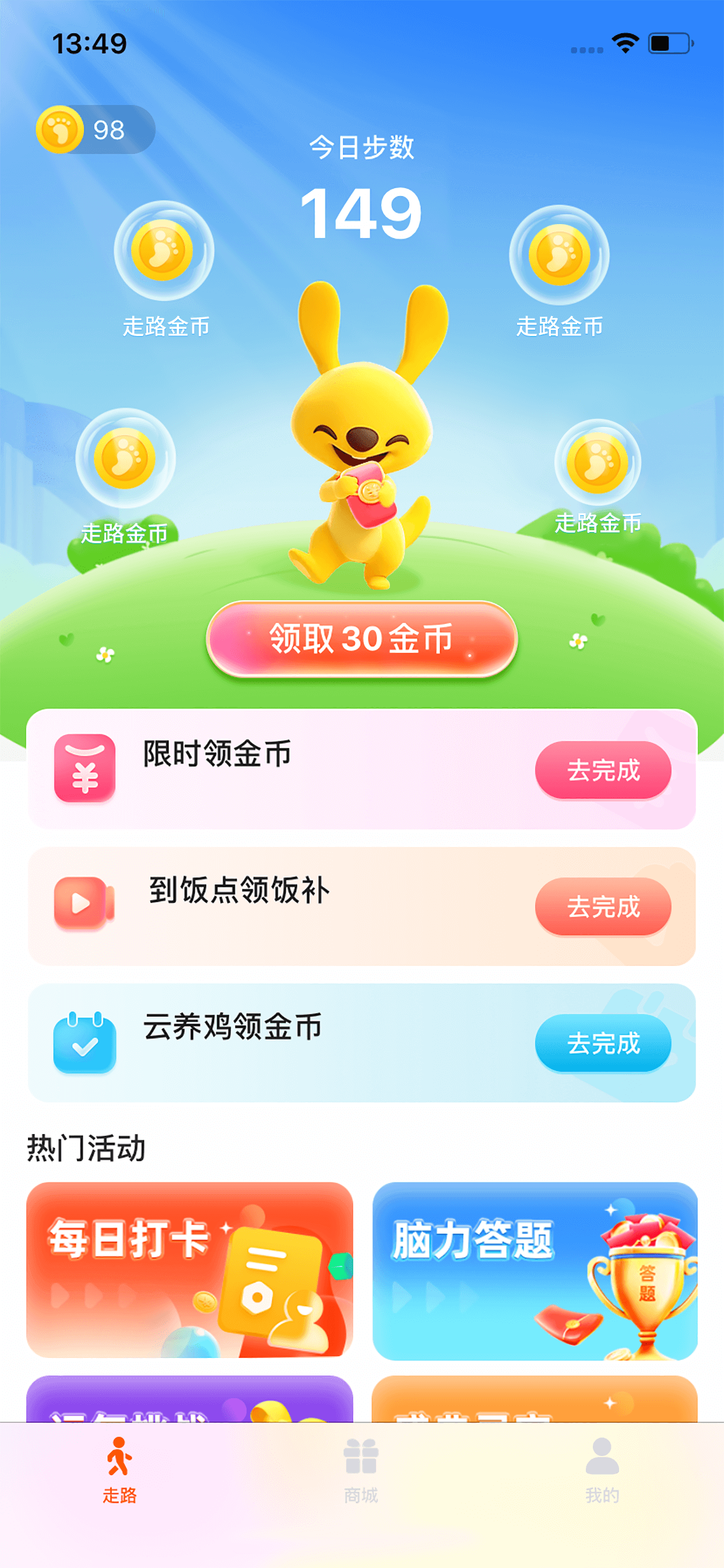 通过步数获得金币,走的越多赚的金币越多,金币可免费兑换生活用品
